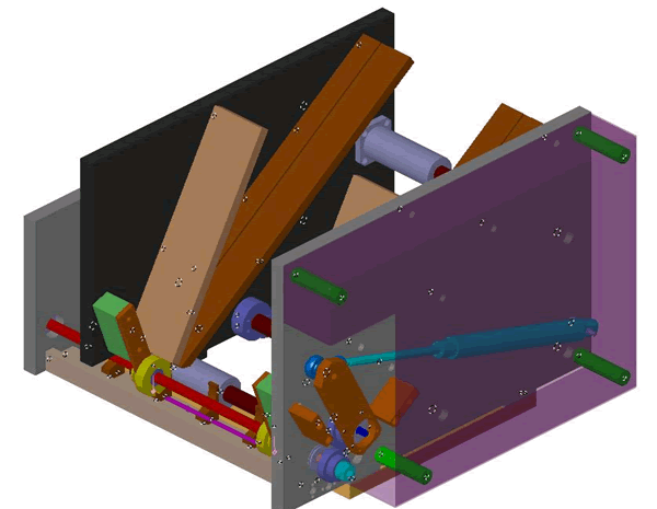 Magazine feeders are often used with parts that are too large to be fed with bowl feeders. Shown below is a magazine feeder that handles 3/16" diameter pins. It can be quickly configured to handle parts from 6" to 16" in length. Its heavy steel plate construction and oversized ball bushing sliding elements ensure that it will provide years of trouble-free service.